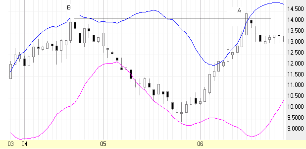 20-day high (B), signifying strong bullishness. Also,