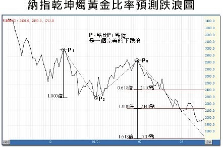 ¶Àª÷¤ñ²v¹w´ú¤ñ¸û½ÆÂø¡A¥¦¬O¥H¶Àª÷¤ñ²v°t¦Xªi®ö²z½×¡A¨Ópºâ¥X¹w´Áªº¤É¶^´T«×¡A¤èªk¬O¤À§O¦bP1¡BP2¡BP3¦UÂI¤@ÂI¡A¦b¹w´úªº¤è¦V´N·|¥X²{¤T±ø½u¡A¥¦ªº¼ÆÈ¤]¸ò¶Àª÷¤ñ²v¦^½Õ¤£¤@¼Ë¡A¦Ó¬O¥HP1¡BP2ªº««ª½¶ZÂ÷¡A¼¥H¶Àª÷¤ñ²v0.618¡B1.000¡B1.618¡A¥H¦¹¹w´ú¶^´Tªº¥Ø¼Ð¡F¦pªG¹w´ú¤É´T¡A«h»P¦¹¬Û¤Ï¡C