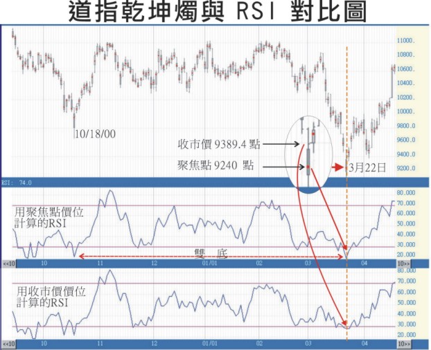 §O¤p¬Ý³o 149.4¡A¥H»EµJÂI9240ÂIpºâRSI¡A§í©Î¥Î¦¬¥«»ù9389.4ÂIpºâRSI¡A®ÄªG«o¦³«Ü¤j¤£¦P¡C¦p¹Ï¥i¨£¡A¥Î¦¬¥«»ù©M¨ä¥L¶Ç²Î»ù¦ìpºâªºRSI©Ò±oªºÈ¦b30ªþªñ¡F§ï¥Î»EµJÂI»ù¦ìpºâªºRSI©Ò±oªºÈ¤w¨ì¹F20¡A¯à¯u¹ê¤Ï¬M·í¤Ñ¤ñ¥H«e¼Æ¤Ñ¶W½æªº¥«ªp¡F¦Ó¥B»P2000¦~10¤ë18¤é©úÅã§Î¦¨Âù©³¡Aµo¥X¤j¥«¤Ï¼u¦b§Yªº°T¸¹¡A¤Ï¬M¬O¤J¥«¨}¾÷¤§¤@¡C±EÀu±E¦H¡H§ë¸êªÌÀ³¦³©ú´¼¿ï¾Ü¡C