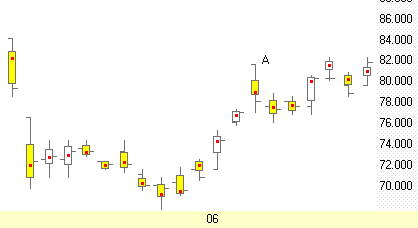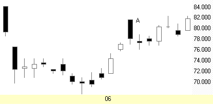 The above chart shows the Candlesticks chart for Cheung Kong (0001). The Bar on the left of A has a