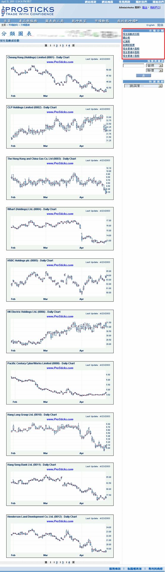 用戶可透過快速選擇鍵揀選股票分類行列。