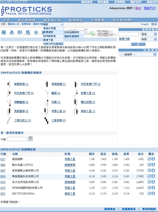 可根据用者选择的阴阳烛形态,搜寻出相关的股票。选择形态包括: 向好吞噬、向淡吞噬、向好身怀六甲、向淡身怀六甲、 头、吊颈、倒转 头、射击之星、早晨之星、黄昏之星、贯穿形态、乌云盖顶、叁白武士、叁飞乌鸦。