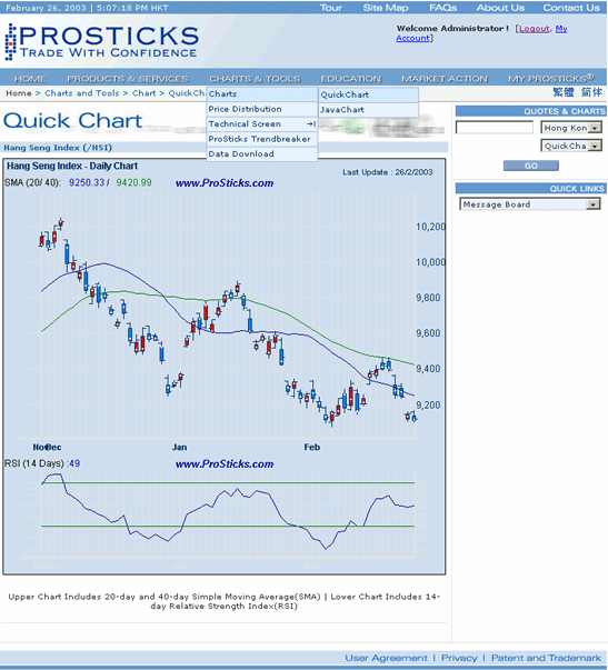 With a click of a button, view the most recent price chart of any security with 20 and 50 moving average and 14-day RSI.