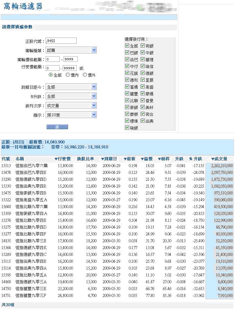 乾坤燭窩輪過濾器可為投資者快速選出合適的窩輪。